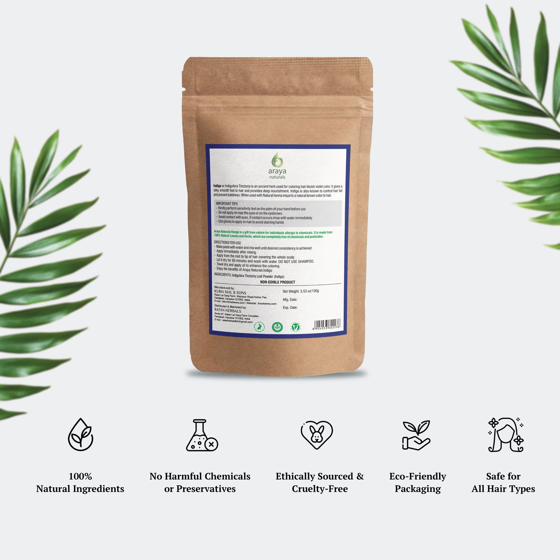 Indigo or lndigofera Tinctoria is an ancient herb used for coloring hair bluish violet color. It gives a silky smooth feel to hair and provides deep nourishment. Indigo is also known to control hair fall and prevent baldness.